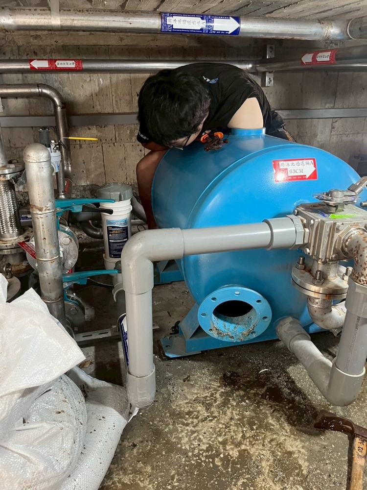 泳池工程-不鏽鋼過濾桶噴砂更換內部零件